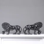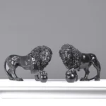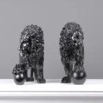 Home Marble Animal Sculptures Black Medici Lions Statue in Pair