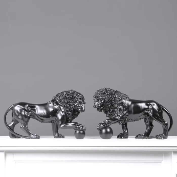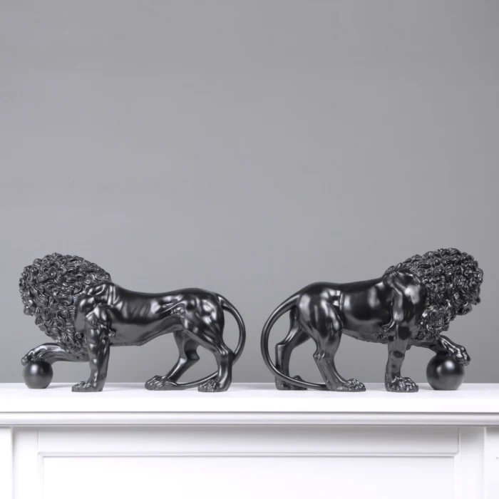 Home Marble Animal Sculptures Black Medici Lions Statue in Pair