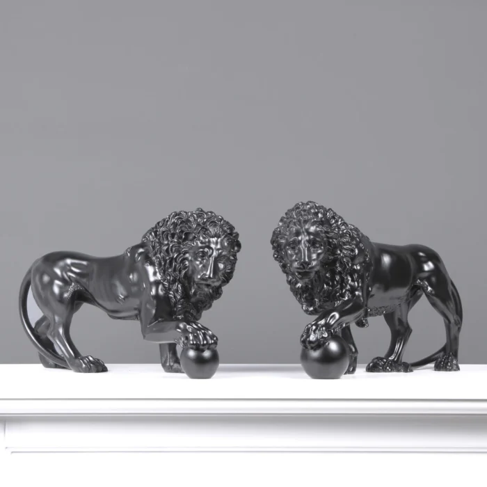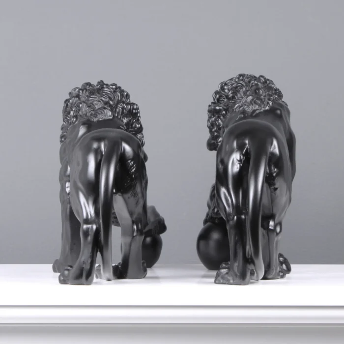 Black Medici Lions Statue in Pair